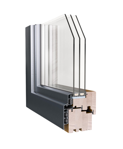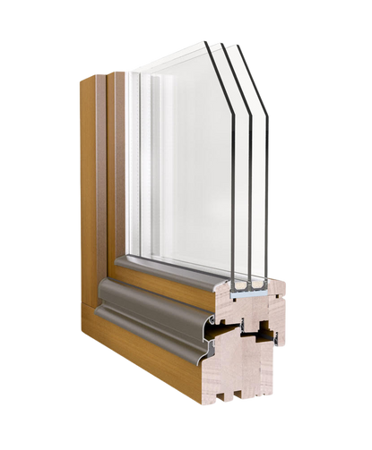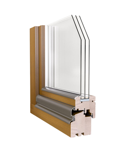Die Montage der Aluminiumschale ermöglicht die Verwendung dickerer, wärmerer Glaspaketen (Ug=0,7-05 W/m2K). Dadurch sind die Holz-Aluminium-Fenster hoch energiesparende Produkte.